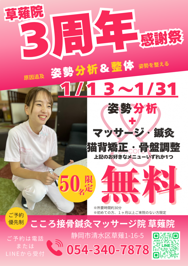 こころ接骨鍼灸マッサージ院 草薙院でございます。